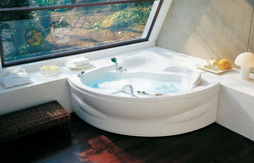 Ванна Jacuzzi Alba Гидромассаж 5 форсунок, ручка, подголовник, панель, смеситель, распределитель, душевая лейка, наполнение с борта ванны Water Fan (как вариант через перелив). 140 x 140 — выс. 57 Объем воды макс. 196 л