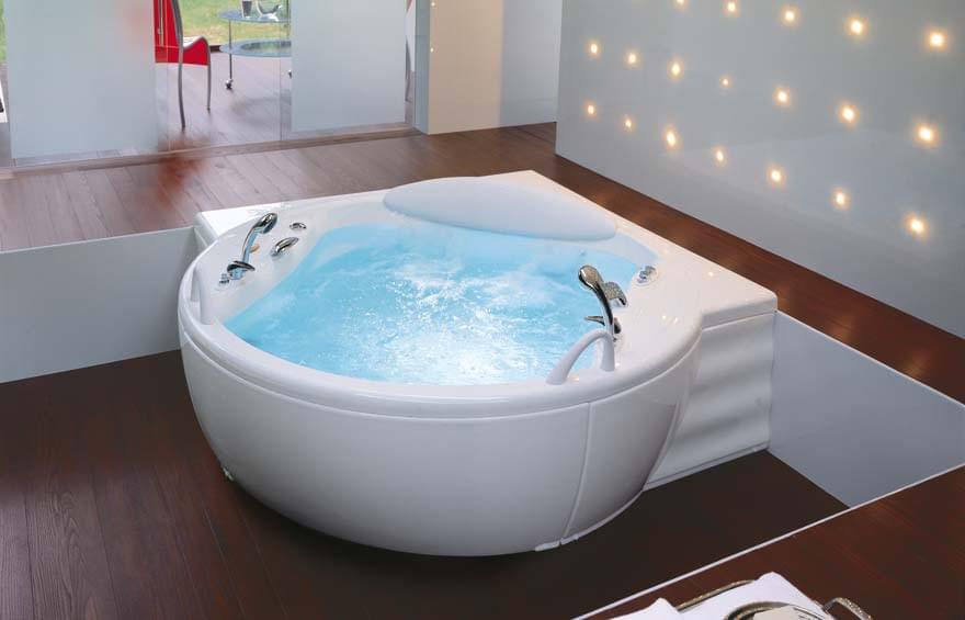 Ванна Jacuzzi Gemini Corner Гидромассаж 6 форсунок, 12 вращающихся микрофорсунок спинного массажа, 2 наполнителя с борта ванны Water Fan, 2 смесителя, 2 распределителя, 2 душевые лейки, 2 ручки, подголовник, подсветка, дезинфекция, передняя панель. 2 варианта комплектации от 262238 рублей. 160 x 160 — выс. 57 Объем воды макс. 420 л