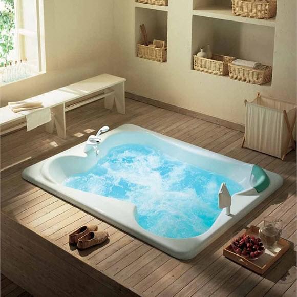 Ванна Teuco 260 с нагревателем, для углубленной установки, с рамой, гидромассажные форсунки (12), цифровая регулировка подачи воздуха и воды, регулировка продолжительности гидромассажа, поясничный массаж, шейный массаж 2 форсунки, пульсирующий массаж, автоматическая дезинфекция, система Hydro Clean System, подводный светильник, нагреватель. 2 варианта комплектации от 288496 рублей. 190 x 160 — выс. 55 Объем воды макс. 500 л