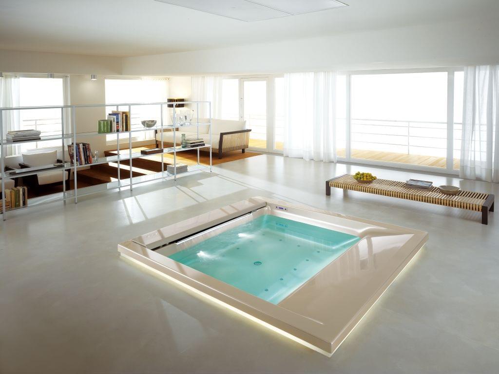 Главными элементами новой ванны Teuco Seaside T07 являются вода, пар, свет, цвет и звук.