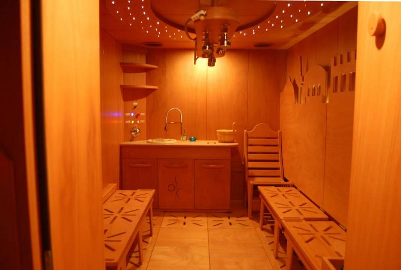 Кабина может одновременно вместить от одного до двух человек для проведения массажа и до восьми человек в случаe турецкой бани, сауны или термальных процедур.
