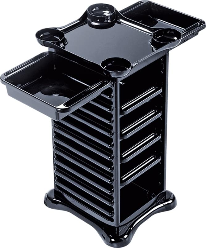 Тележка парикмахерская полузакрытого типа на колесиках. Выполнена из прочного пластика, имеет 6 выдвижных ящиков и подвес. Цвет белый, черный, разноцветный.