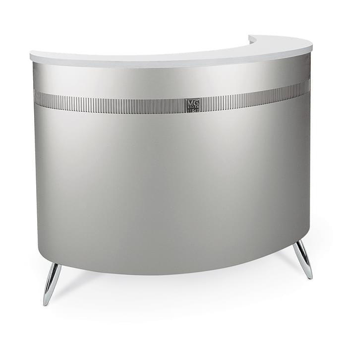 Стойка администратора. Фасад - серебристый металл, тумбы и столешница - ламинат. Длина 130см или 180см. Размер: 130/180х66х105